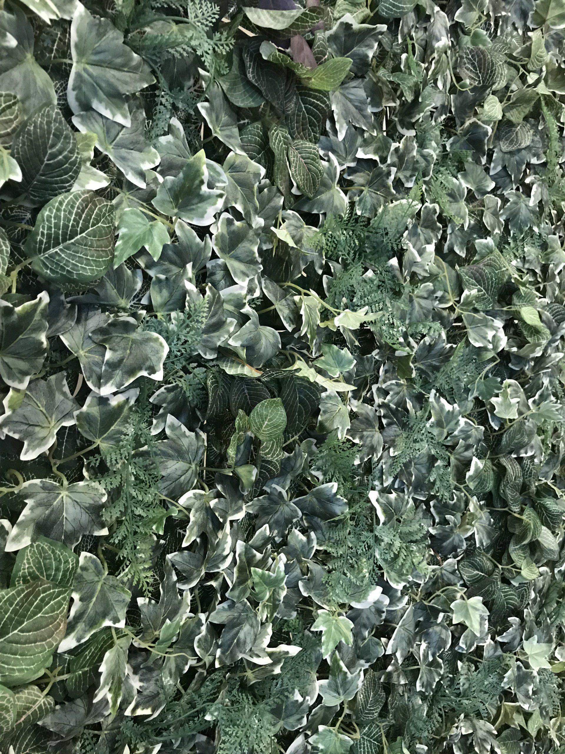 We've added these amazing flower walls to our business, one layered with beautiful nude, blush and soft pink blooms and eucalyptus foliage and the Ivy Foliage wall has different shades of green and purple leaves, ivy and ferns to add texture to this vibrant wall. All of our flowers are silk and produced to a very high standard.