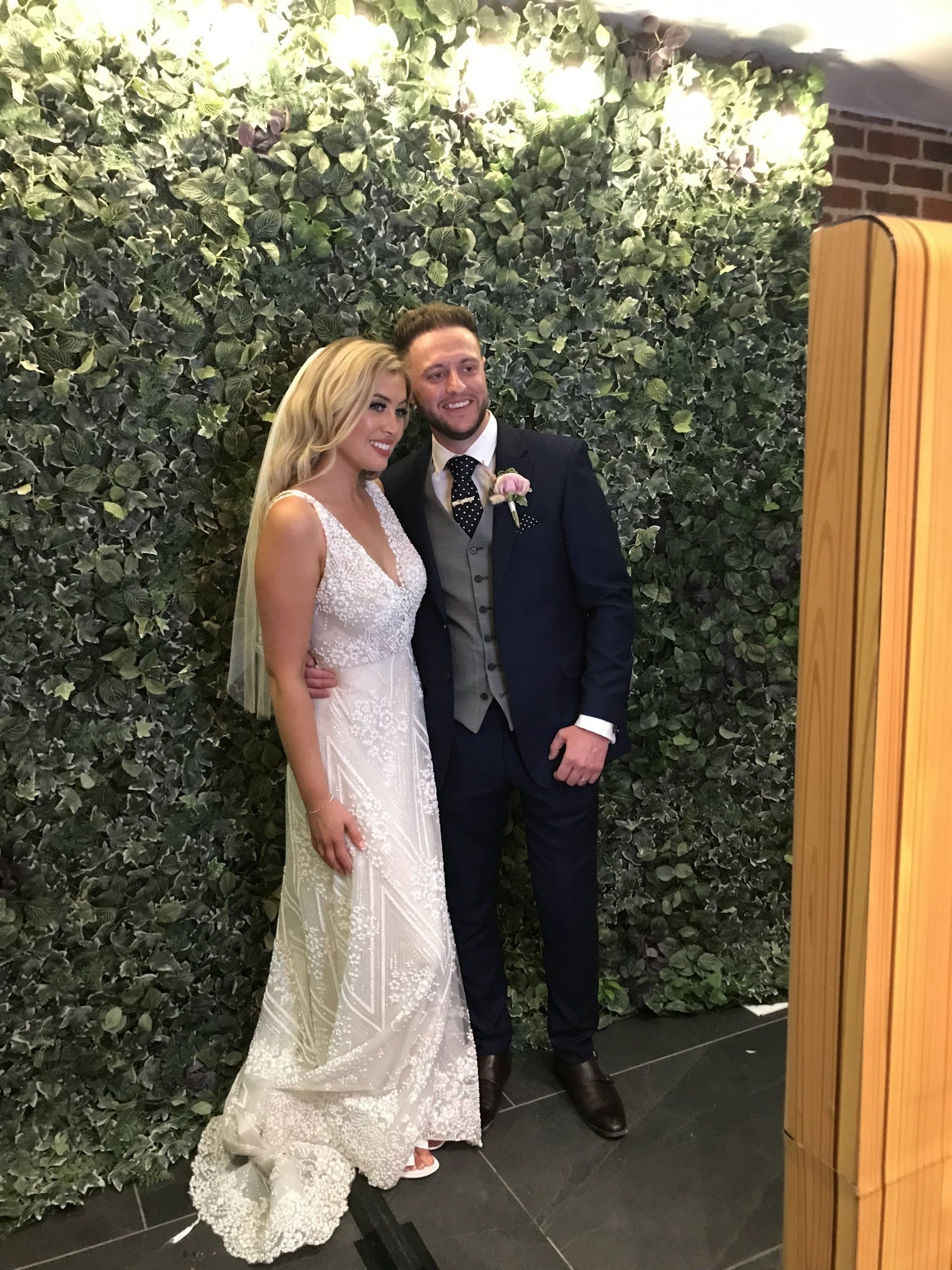 We've added these amazing flower walls to our business, one layered with beautiful nude, blush and soft pink blooms and eucalyptus foliage and the Ivy Foliage wall has different shades of green and purple leaves, ivy and ferns to add texture to this vibrant wall. All of our flowers are silk and produced to a very high standard.